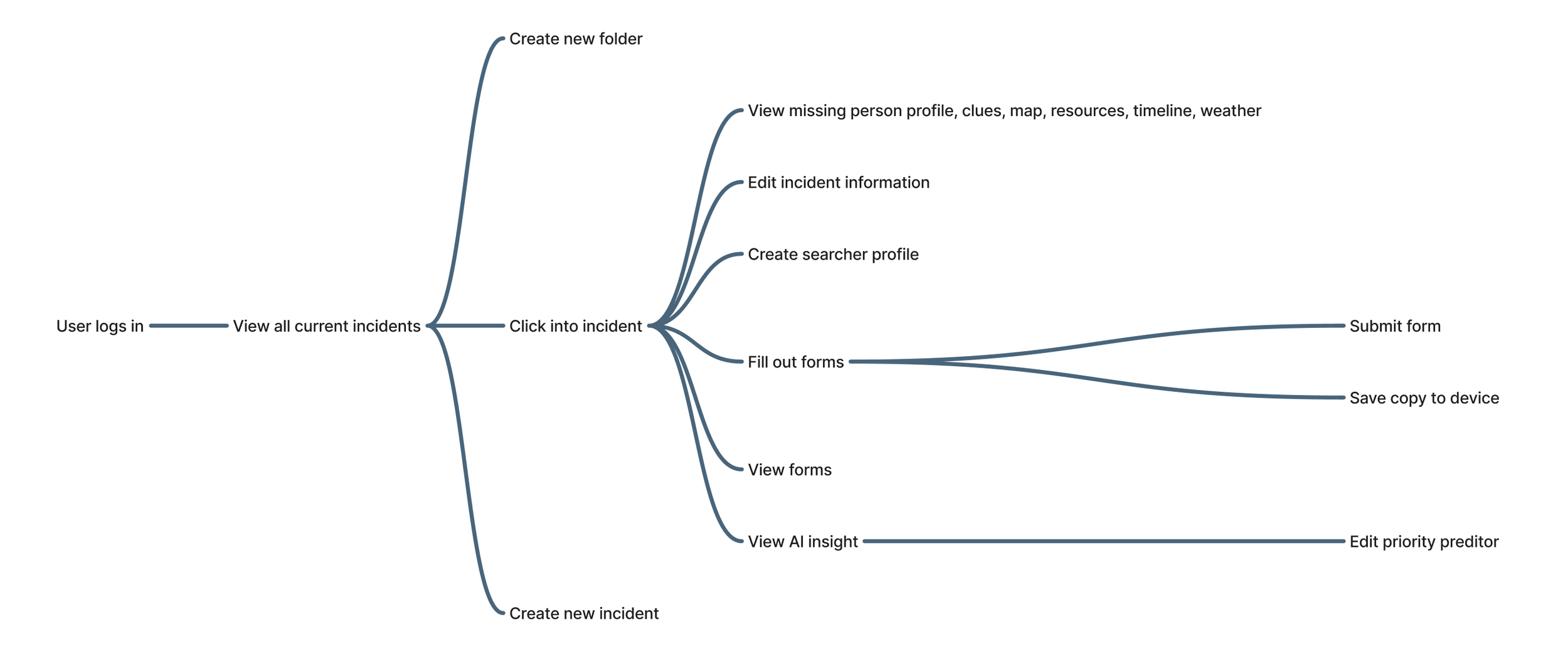 Given the high volume of critical case documentation and the urgency of search and rescue, we focused on creating a streamlined user flow. We mapped the user journey to make information intuitive and easy to access, organizing content from the original website into clearly defined sections under relevant tabs.
